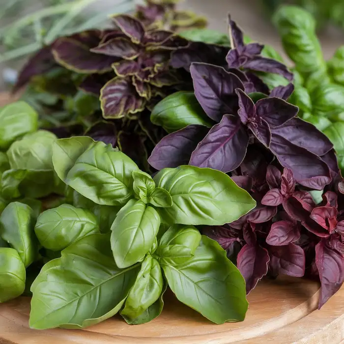- Tailando bazilikas – unikalus pasirinkimas Azijos virtuvės mėgėjams dėl savo anyžiaus aromato.