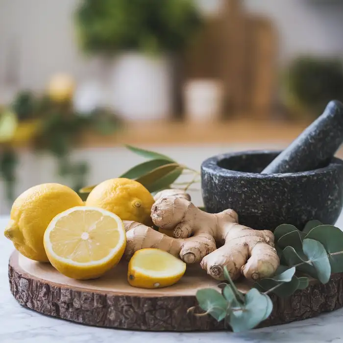 • Imbierinė arbata: Sumaišykite šviežiai tarkuotą imbierą su karštu vandeniu, pridėkite citrinos ir medaus pagal skonį.